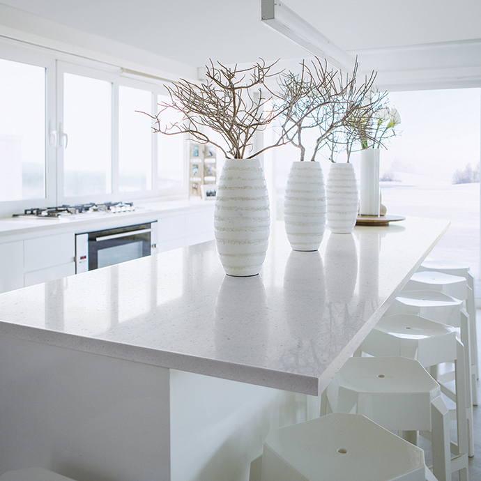 As a bonus, we have hundreds of design options so you can find the right look to fit your company’s branding. For functionality but also beautiful aesthetic in your office space, multi-family project, or hospitality project, our cast stone and solid surface materials are the way to go.