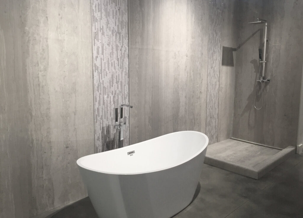 Yes! We use large-format slabs that are custom-manufactured to fit your shower or tub walls perfectly. This eliminates the need for the thin grout lines found in tile, meaning there is nowhere for mold, mildew, or soap scum to hide.