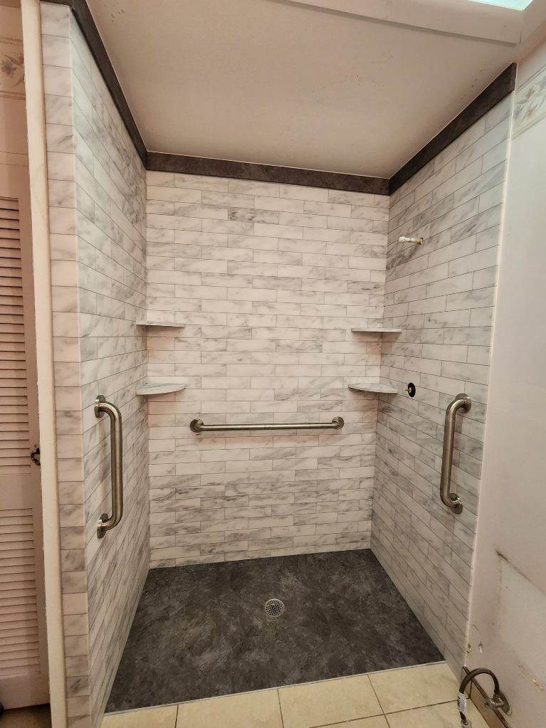 We so love our new, groutless shower and countertop. It's easy to keep clean and dry after showering. Never, ever have to clean grout again! Their customer service was fabulous - so attentive either quick response time. I highly recommend both their products and service!